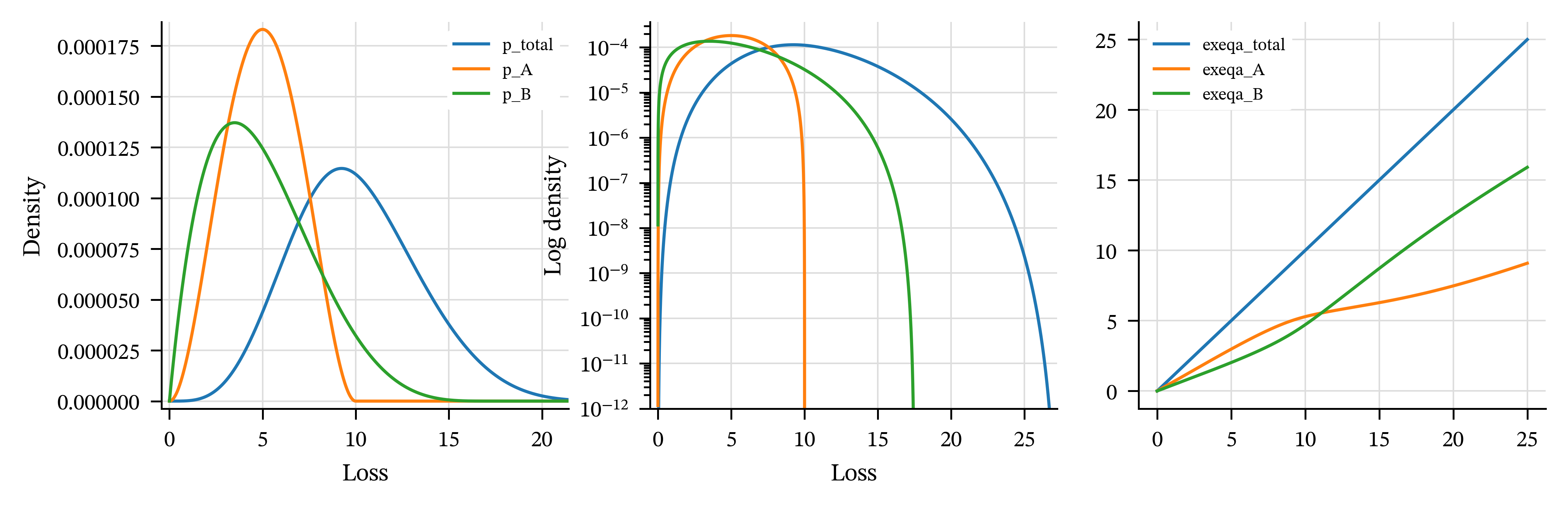 Question 2, answered by the Pricing module, concerns how that asset amount \(a\) is to be split between premium \(P\) and capital \(Q\) (Equation eq-funding); this is quite different from determining \(a\). It is about risk pricing or risk appetite. We must determine the expected margin insureds need to pay in total to make it worthwhile for investors to bear the portfolio’s risk. Such a rule we call a pricing risk measure and we may write premium as a functional \(P = \rho(X)\).