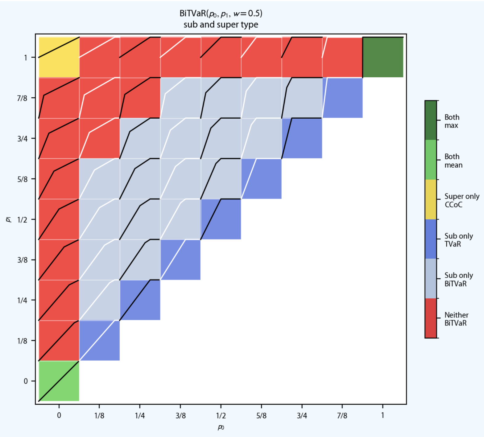 | TVaR | \(1\wedge s/(1-p)\) | \(p=0.2713\) |